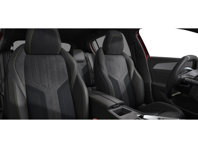 InterieurBekleding Alcantara/kunstlederNew Peugeot i-Cockpit®: configureerbaar digitaal head-up instrumentenpaneel, 10" capacitief touchscreen en compact multifuctioneel stuurwielAluminium instaplijstenChroomomranding van de ruitschakelaarsConfigureerbaar 3D-instrumentenpaneelDashboard, middenconsole en stuurwiel afgewerkt met groen stikselLED Ambient Lighting - sfeerverlichting van dashboard en deurpanelen voorin met 8 verschillende kleurenMattenset GT met groen stikselSierdelen op het dashboard en de deurpanelen afgewerkt in "Gris Stene"Sierdelen op het dashboard en de deurpanelen afgewerkt in stofSportstoelen in stof/kunstleder FALGO MistralSportstuurwiel type GT