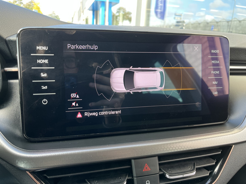 De nieuwste veiligheidssystemen komen in deze ŠKODA Kamiq samen. Verkeersborddetectie herkent tijdelijke en permanente verkeersborden langs en boven de weg. Het Lane-keeping systeem is altijd alert. Over de rijstrooklijntjes gaan is er niet bij. Forward collision warning helpt je om kop-staart aanrijdingen te voorkomen. Ook helpen het hill hold functie, vermoeidheidsherkenning, autonoom remsysteem en bandenspanningcontrolesysteem, jouw rit tot een veilige rit te maken.