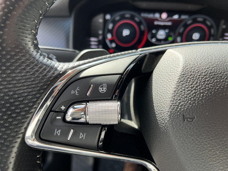 Een gevisualiseerd overzicht van alle belangrijke functies wordt geleverd door het digitale dashboard. Overzichtelijk en veilig parkeren met de achteruitrijcamera. Overal en altijd. Als je regelmatig met een caravan of aanhanger rijdt, is de elektrisch inklapbare trekhaak een uitkomst. Veilig en comfortabel rijden wordt nog eens versterkt door Connected Services, zodat je diverse vitale functies van de auto altijd kunt checken in de app. Het complete geluidsspectrum van de hi-fi krijgt een extra boost door het high performance audiosysteem. De ŠKODA is standaard voorzien van: dashboard met spraakbediening, full map navigatiesysteem, WIFI-hotspot, achteropkomend verkeer waarschuwing, electronic climate control en schakelpaddles aan het stuur.