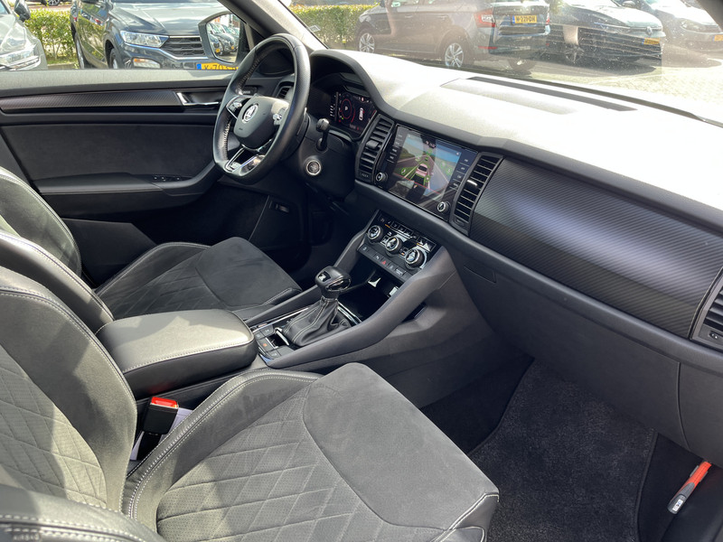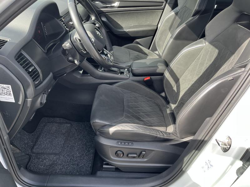 Hij is klaar voor nog jaren rijplezier, deze ŠKODA Kodiaq uit 2021. Er staat 94616 kilometer op de teller. Hij heeft een benzinemotor en een automatische transmissie. Lekker hoor, die verwarmbare voorstoelen. Helemaal op koude dagen. Natuurlijk zijn de sportstoelen super functioneel als het rechterpedaal ingetrapt wordt. Maar ook voor het uiterlijk doen ze veel! Voel die ruimte eens! Lekker veel licht door het elektrisch bediende glazen panoramadak. Een praktische extra is de elektrisch bedienbare achterklep die opent en sluit met een druk op de knop. Extra bagageruimte of extra zitruimte: met de derde zitrij is de keuze aan jou. Bij de uitrusting van deze auto horen onder meer 19 inch lichtmetalen velgen, LED koplampen, dakspoiler, donker getint glas achter, in delen neerklapbare achterbank en LED-achterlichten.