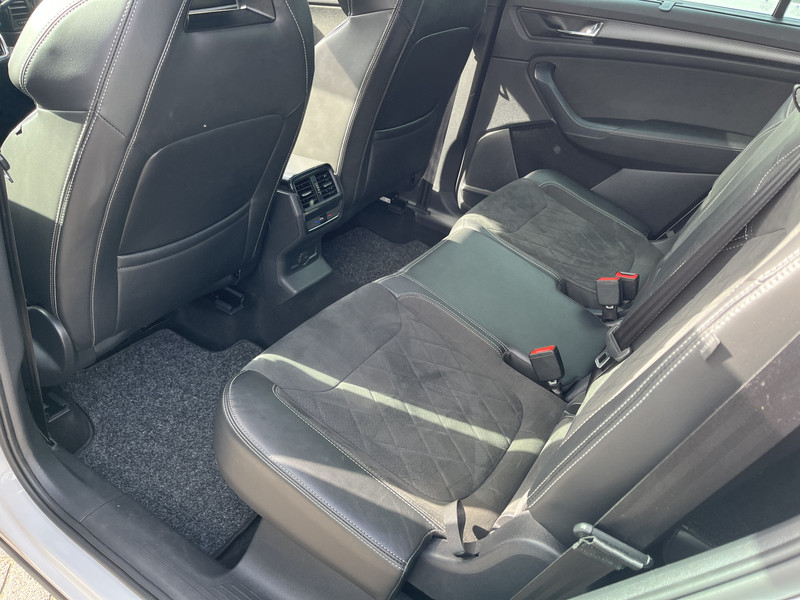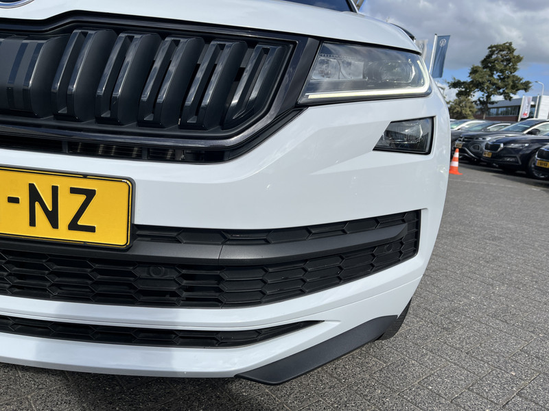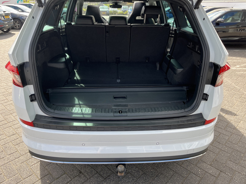 Deze ŠKODA Kodiaq staat garant voor vele veilige en comfortabele kilometers. De krachtige benzinemotor van deze auto is gekoppeld aan een automatische transmissie. Voel die ruimte eens! Lekker veel licht door het elektrisch bediende glazen panorama dak en een derde zitrij, dus iedereen kan mee! De bagage kun je kwijt via de elektrisch bedienbare achterklep. 's Winters komen de verwarmbare voorstoelen heerlijk van pas. De sportstoelen zorgen ervoor dat je goed en comfortabel zit, ook als het gas erop gaat. Bij de uitrusting van deze auto horen onder meer 19 inch lichtmetalen velgen, LED koplampen, dakspoiler, donker getint glas achter, in delen neerklapbare achterbank en LED-achterlichten.