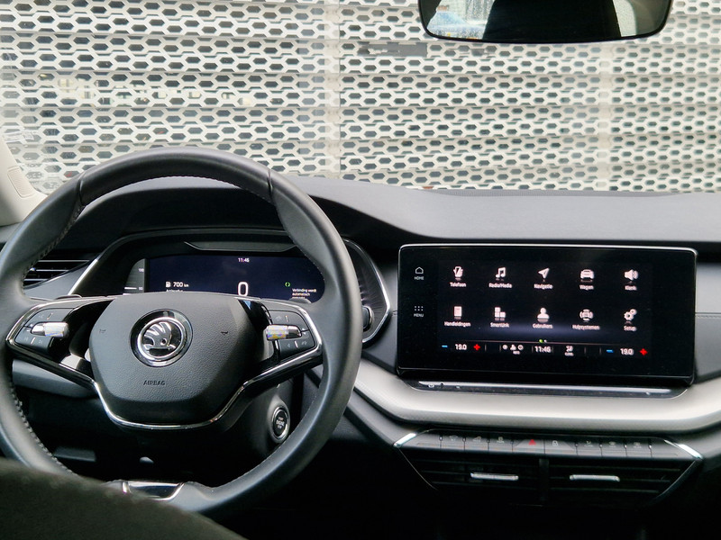 Voor een goed en duidelijk overzicht onderweg is het digitale dashboard uitermate slim ingedeeld. De meest gebruikte voertuigfuncties laten zich met behulp van jouw stem bedienen. Fijn, zo'n trekhaak. Maar niet constant nodig. Daarom heeft deze ŠKODA Octavia Combi een elektrisch inklapbare trekhaak. Mocht zich een probleem voordoen, dan krijg je via remote services op je smartphone te zien wat er precies aan de hand is, waar je ook bent. Selecteer jouw reisbestemming en het full map navigatiesysteem brengt je snel waar je moet zijn. Ook WIFI-hotspot, automatische airconditioning, schakelpaddles aan het stuur, draadloos opladen, DAB ontvangst en parkeersensoren voor en achter zijn aan boord.