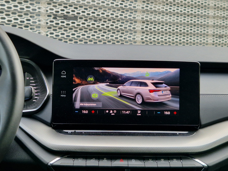 Zoals je mag verwachten van deze ŠKODA Octavia Combi is hij uitgerust met een reeks aan actieve veiligheidssystemen. Ongemerkt buiten de rijstrook raken? Nee hoor, het Lane-keeping systeem waarschuwt en corrigeert. Botsingen met een voorligger gebeuren relatief vaak. De forward collision warning slaat tijdig alarm als dat risico ontstaat, zodat je kunt ingrijpen. Bij concentratieverlies en toenemende vermoeidheid van de bestuurder, geeft de auto een sterk signaal om je weer bij de les te houden. Hierdoor kunnen veel ongelukken voorkomen worden. In deze ŠKODA vinden we verder een hill hold functie, autonoom remsysteem en bandenspanningcontrolesysteem.