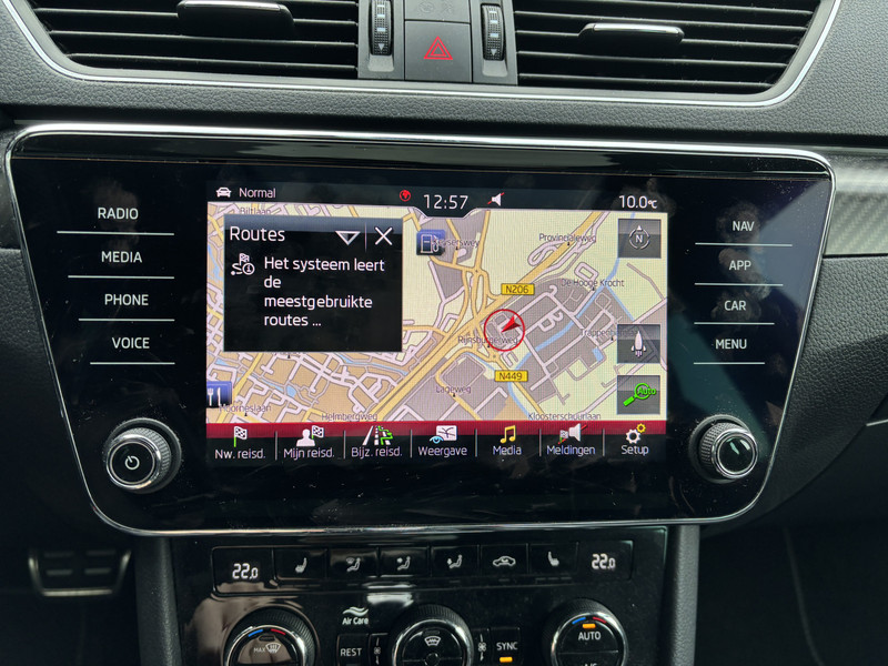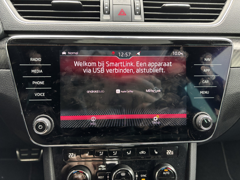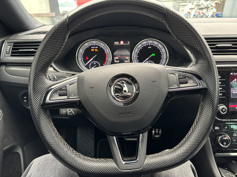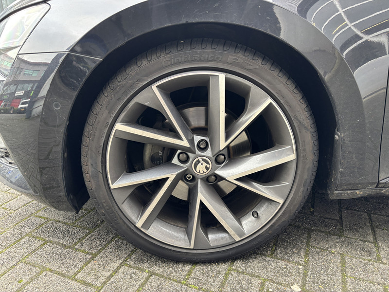 De ŠKODA Superb Combi is gebouwd met hoogwaardige techniek en maakt het rijden van lange ritten, maar ook korte stukjes, tot een feestje. Met zijn benzinemotor en automatische transmissie is dit een prima auto voor nog vele kilometers. Boven uw hoofd schuiven de wolken zichtbaar voorbij door het elektrisch bediende glazen panorama dak. En kijk eens aan de achterzijde wat gemakkelijk: een eveneens elektrisch bedienbare achterklep! Lekker hoor, die verwarmbare voorstoelen. Helemaal op koude dagen. Verblinding van tegenliggers is er niet meer bij, dankzij de koplampen met matrix LED-verlichting. En toch de kwaliteit van daglicht in het donker! Bij de rijke uitrusting horen ook 19 inch lichtmetalen velgen, donker getint glas achter, in delen neerklapbare achterbank, LED-achterlichten en verstelbare lendensteunen.