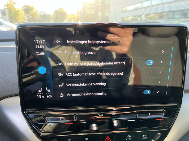 In de Volkswagen ID.4 heeft jouw veiligheid en die van jouw omgeving prioriteit. Dat de auto steeds meer taken van de bestuurder overneemt, merk je bijvoorbeeld aan het systeem voor verkeersbord-detectie in deze Volkswagen. Mooi binnen de lijnen van de rijstrook blijven? Het Lane-keeping systeem helpt altijd een handje. Het forward collision warning-systeem is constant alert en detecteert via sensor de afstand tot voorliggers. Wordt die te klein, dan volgt een automatische waarschuwing. In deze Volkswagen vinden we verder een hill hold functie, vermoeidheidsherkenning, autonoom remsysteem en bandenspanningcontrolesysteem.